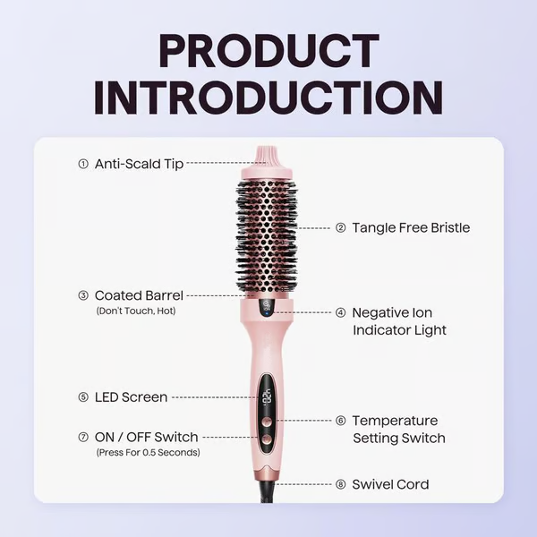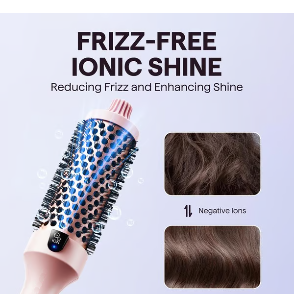 - Brush & Style: Glide the brush through your hair—let the heated bristles and curling action create beautiful curls, waves, or volume.